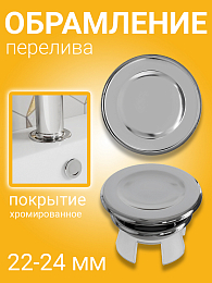 Обрамление перелива для раковины, заглушка для перелива ударопрочная хромированная 22-24мм (Серебристый) - это декоративный элемент для сантехнического оборудования, который придает переливному отверстию в раковине эстетичный аккуратный вид. Заглушка подходит для отверстий перелива диаметром 22-24 мм и выполнено из ударопрочного пластика, который устойчив к повреждениям и воздействию влаги.